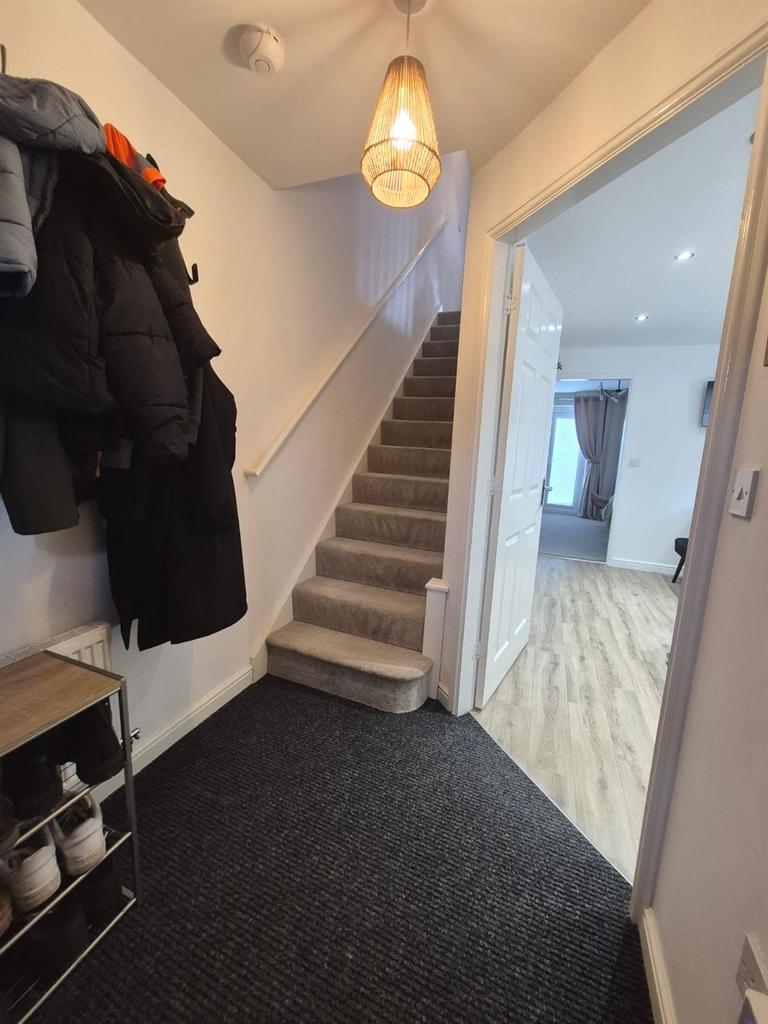 The entrance hallway comprises of a central heating radiator, an entrance door to the front and stairs leading to the first floor.