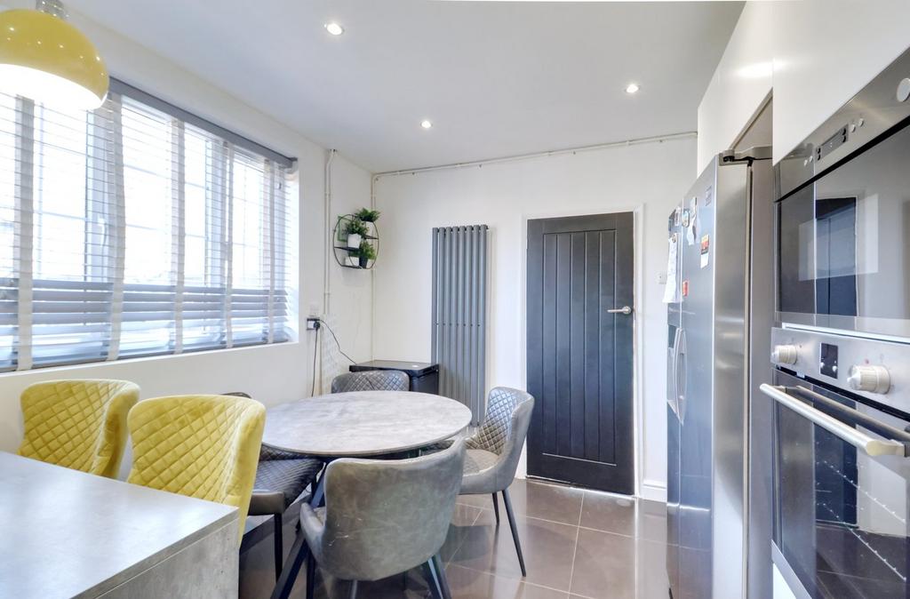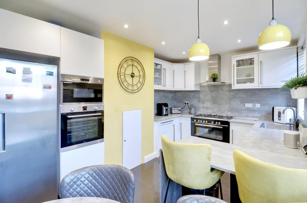 5.38m x 3.0m (17' 8" x 9' 10") Double glazed windows to rear, inset spotlights and downlights to ceiling, a range of matching wall and base units, laminate worksurfaces, inset sink with mixer tap, space for large cooker, extractor hood, space and plumbing for washing machine, integrated dishwasher, laminate splashbacks, integrated double oven, space and plumbing for American-style fridge freezer, gun metal grey vertical radiator, black porcelain tiled flooring.