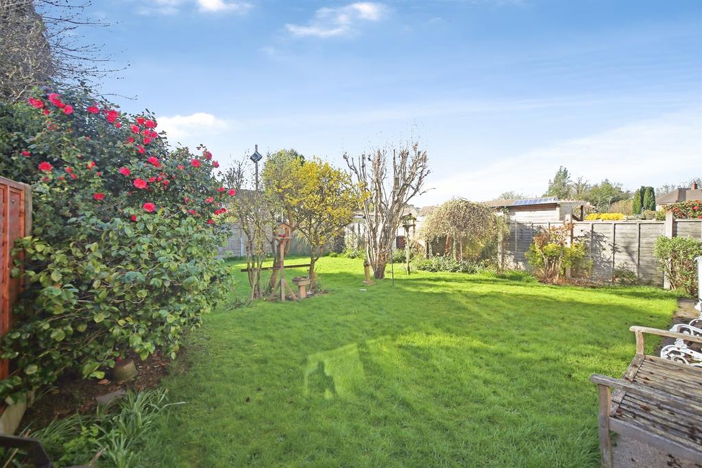 Fence enclosed boundaries, patio, lawn, well established shrubs and side gate to frontage.