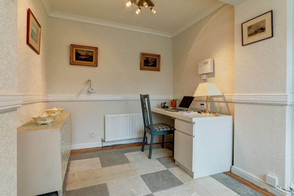The original garage has been converted into a dedicated home office - a proper room with its own space and its own door off the hall. A new garage has been built on the side, so you haven't lost the storage space or the secure parking. Out front, there's a double driveway in front of the old garage and the new - meaning space for four cars, a garage and a home office, all accounted for before you've even opened the front door.