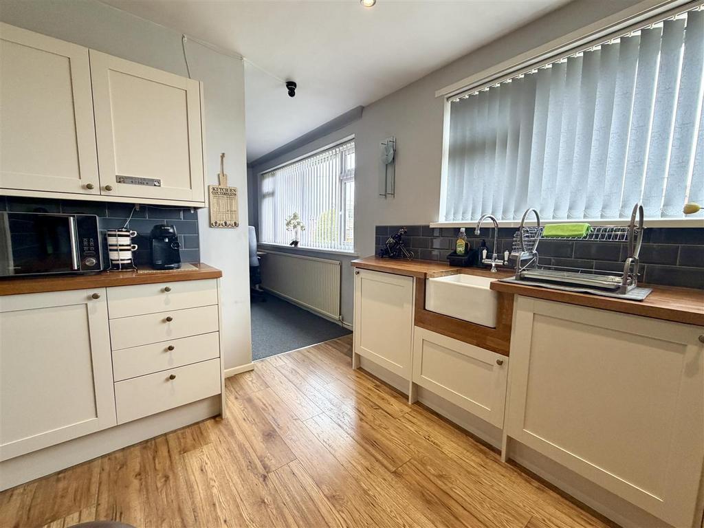 Nestled in the charming Montague Crescent of Garforth, Leeds, this well presented semi-detached bungalow offers a delightful living experience. With two well-proportioned bedrooms, this property is perfect for those seeking a comfortable and manageable home. The spacious lounge provides an inviting space for relaxation and entertainment, while the modern fitted kitchen is a true highlight. It features elegant wood work surfaces, a traditional Belfast sink, and a range of integrated appliances, including a gas hob, extractor, electric oven, fridge, freezer, and washer/dryer, making it a joy for any home cook.