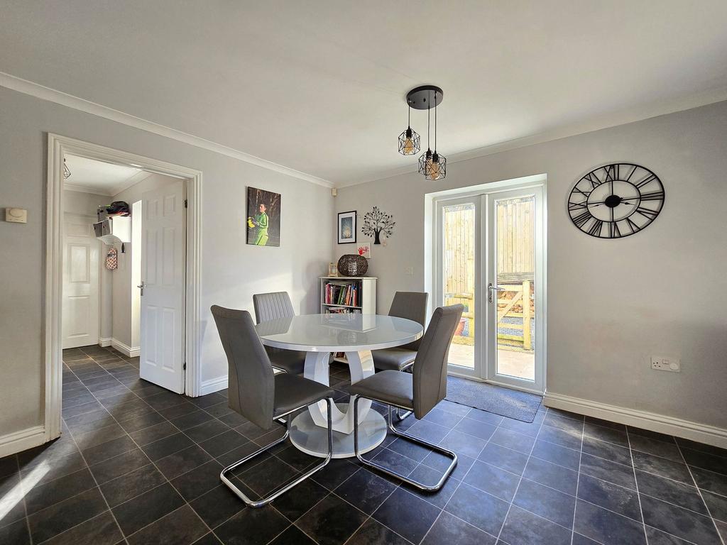 This light and airy four bedroom house was completed in 2004 and has been updated in certain key areas since providing a delightful home. One enters a generous hallway, off which is a cloakroom/WC and off the hall is a lovely square sitting room with window to front and woodburning stove. There is a large kitchen dining room with modern white fronted units and doors out to the rear garden. There is a separate utility room and access to the integral garage. On the first floor are four double bedrooms, the principal bedroom having its own En-Suite facilities and a further family bathroom/WC.