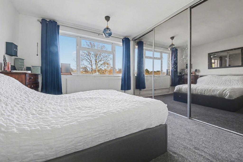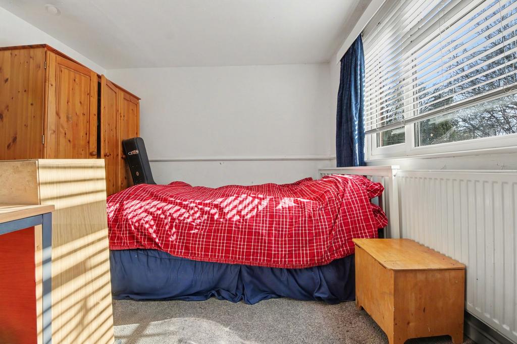 Bedroom two is positioned at the front, with a double-glazed window, carpeted flooring, and a radiator.