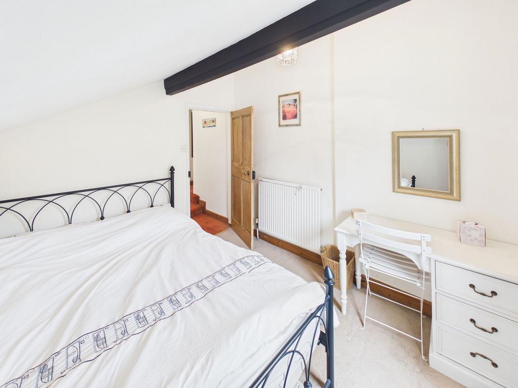Upstairs, two inviting bedrooms continue the story, including one with striking original oak panelling and its own feature fireplace. From here, a drop-down ladder leads to a hidden gem—a remarkable roof space where far-reaching views stretch across the bay towards Ravenscar and the open sea beyond.