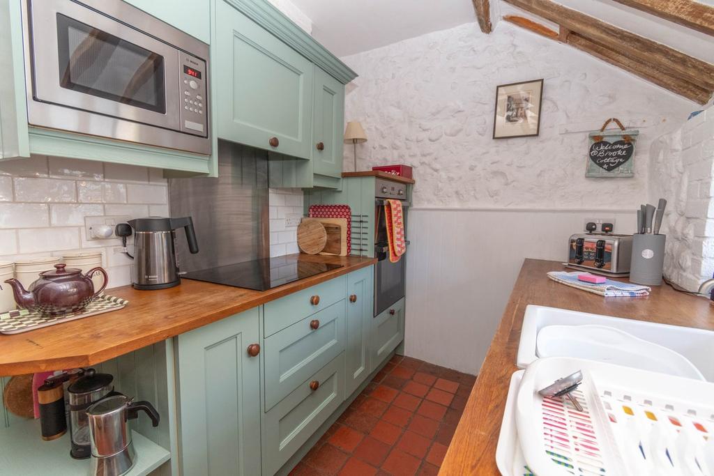 The beamed living/dining room with front aspect over the green features an impressive inglenook fireplace which houses a wood burner and the second reception, sitting room also overlooks The Green. There is a pleasant country kitchen and utility room/WC ideal for muddy boots after a long country walk. On the first floor, the principal bedroom has an en-suite shower room and there is also a good sized second bedroom and bathroom.