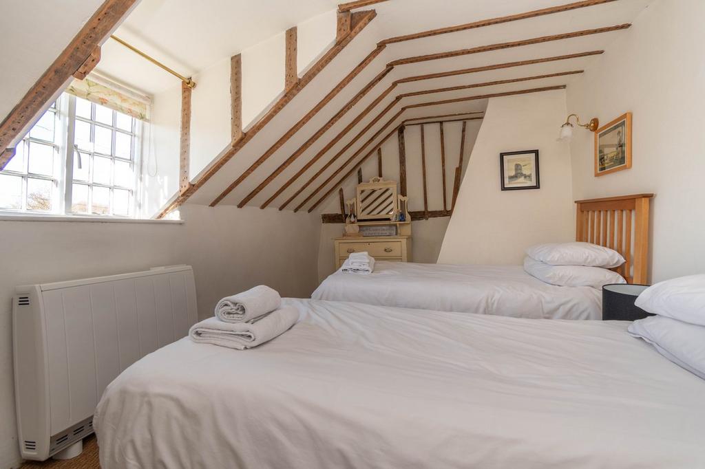 A classic Norfolk winder staircase leads of the living/dining room to a lovely beamed landing with roofline window providing natural light. Bedroom one, with beamed vaulted ceiling and dual aspect to front and side benefits from an en-suite shower room. Bedroom 2 is a good sized double, again beamed and vaulted with front aspect and there is an excellent family bathroom with roofline window.
