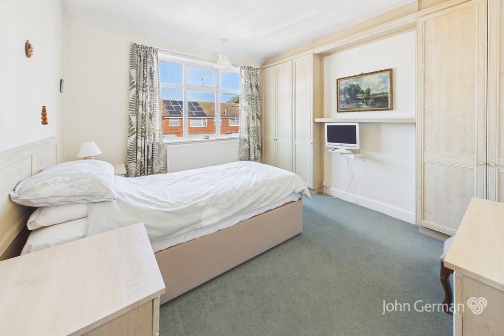 Externally, the rear garden is a fantastic size and south facing, receiving the sun practically all day. The garden is predominantly laid to lawn with a mixture of mature borders and trees and an attractively paved patio seating area, which offers a lovely space to relax or entertain. The single garage is accessed either through a personnel door via internal lobby or from the driveway to the front of the property.