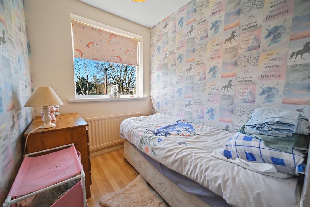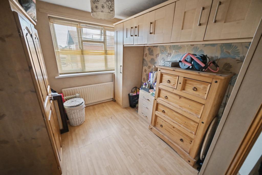 Bedroom Three: 10’10’’ (3.29m) x 8’8’’ (2.63m) Built in wardrobe with railing & shelving, radiator, laminate flooring and double glazed window to rear.