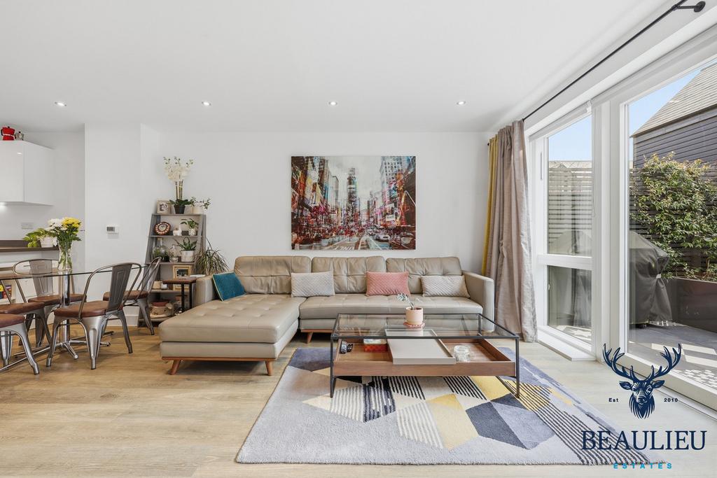 Upstairs, the theme of high ceilings continues with a high vaulted ceiling across the landing area, which gives access to two ample sized double bedrooms, one of which has fitted wardrobes and en suite bathroom. Both bedrooms feature floor to ceiling windows that superbly facility an abundance of natural light. The upstairs accommodation completes with a spacious family bathroom that features a sun tunnel.