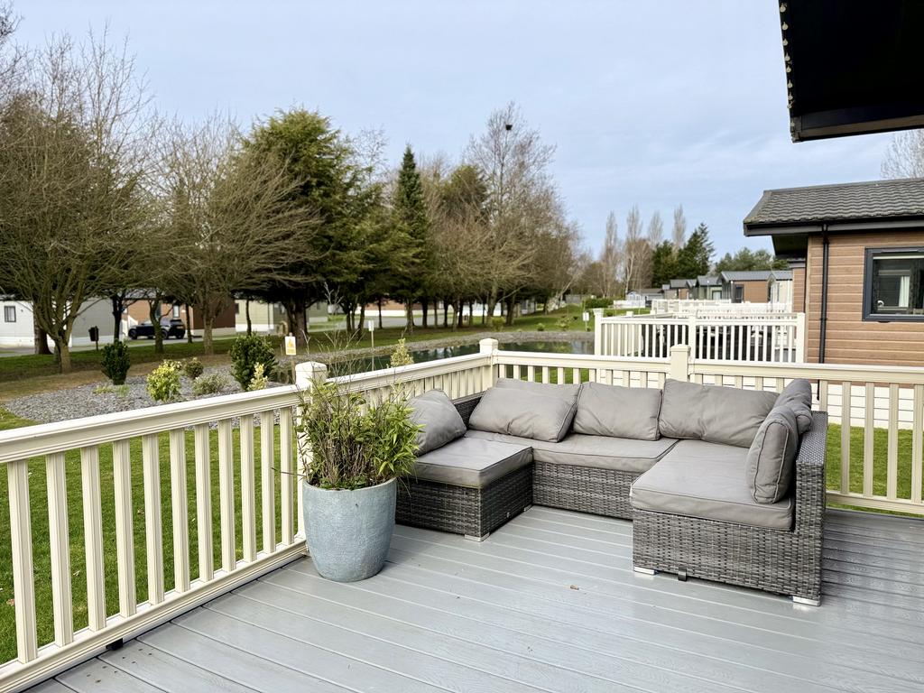 - Commanding a spacious corner plot with breathtaking panoramic views of the immaculately landscaped golf course, this lodge offers an unrivalled lifestyle. Step out onto an expansive UPVC composite veranda—ideal for entertaining or simply enjoying the peaceful surroundings. The private, driveway accommodates two vehicles, while well-maintained green spaces are cared for all year, so you can spend more time indulging in the amenities rather than on upkeep.