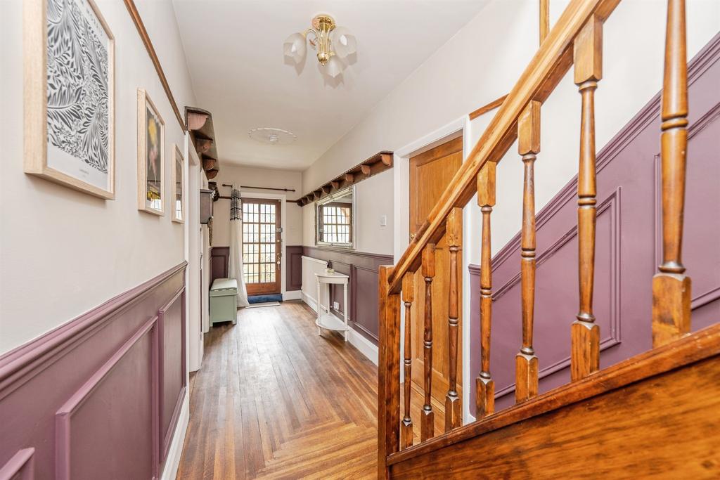 The welcoming entrance hall, with its warm timber flooring, decorative panelling and feature staircase, immediately sets the tone. Two reception rooms offer superb everyday living and entertaining space, and the well-appointed kitchen has a contemporary country feel.