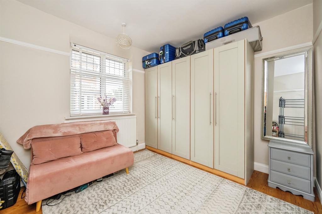 Another substantial double bedroom with a window offering pleasant garden views. Versatile as a bedroom, office, or secondary sitting room.
