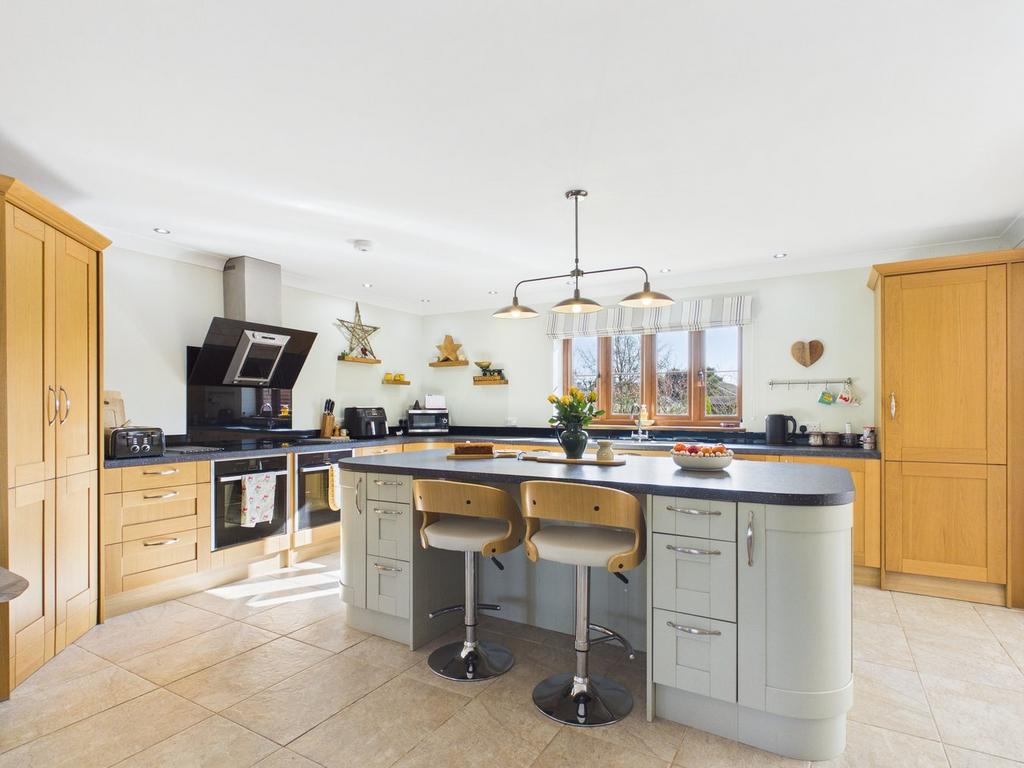 Rowde House was built in 2015 as a self build by the existing owner. The layout inside has been thoughtfully designed to accommodate a large family with plenty of options for space to entertain. The kitchen/dining area has duel aspect windows to offer space and light. The kitchen area features a central island with seating plus multiple integrated appliances and space for meal preparation. From the kitchen there is easy access to the garden room with double doors to the rear garden or just an extra space to enjoy the garden views. The living room benefits from a log burning stove for character and warmth plus patio doors that lead to the garden and a bay window to the front. Upstairs are 4 generous bedrooms two of which have En-suites plus a generous family bathroom. Outside is a detached double garage with a storage space above all with power and light. Parking is available via the gravelled frontage to allow easy access for multiple vehicles. The gardens that surround the property are well laid out and maintained with mature planting, an ornamental pond and plenty of space to enjoy the outside. Air-source heating and solar panels really add to the efficiency of this property which offers modern and generous living in a lovely location.