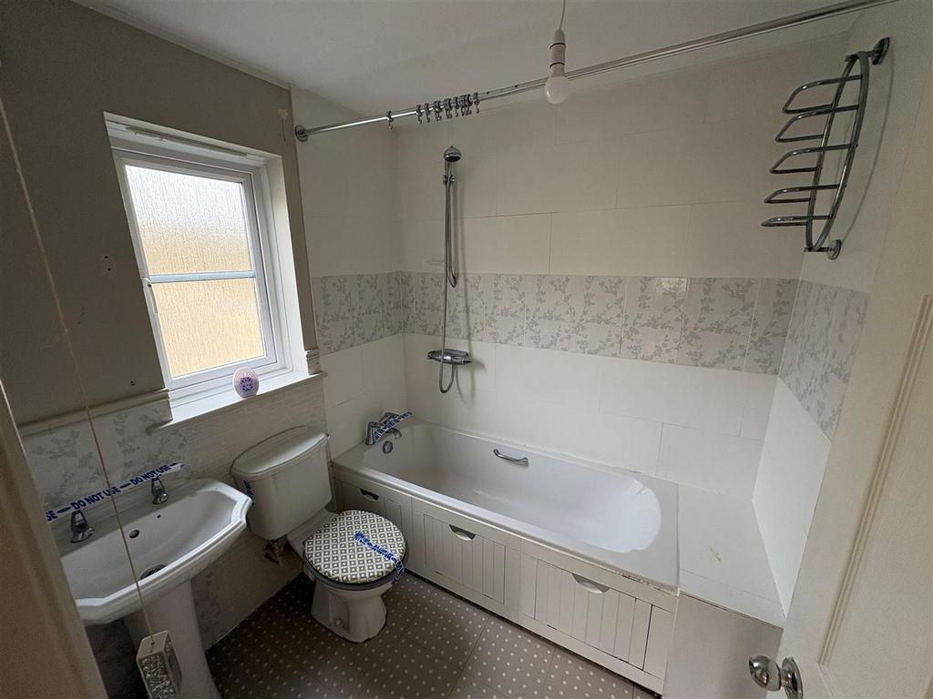 Bathroom - Three piece suite comprising panelled bath, low suite wc, pedestal wash basin, double glazed window.