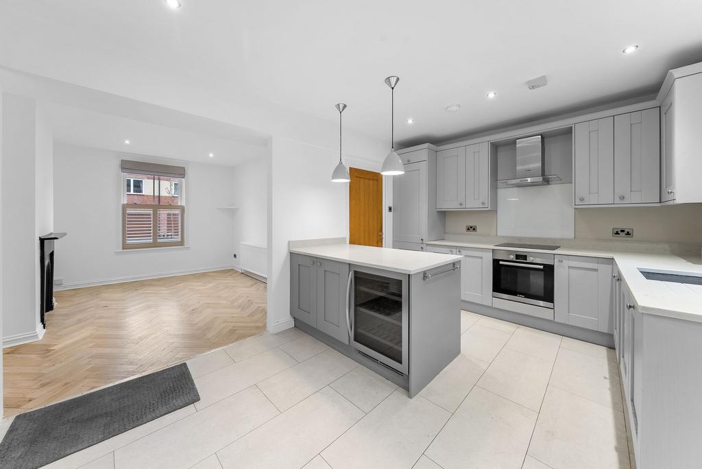 Finished to an exacting standard throughout, the property seamlessly blends period charm with contemporary styling. The welcoming entrance hall, complete with bespoke understairs storage and striking herringbone flooring, leads through to a stunning open-plan breakfast dining kitchen.