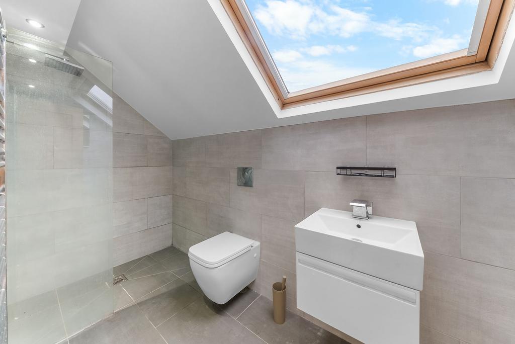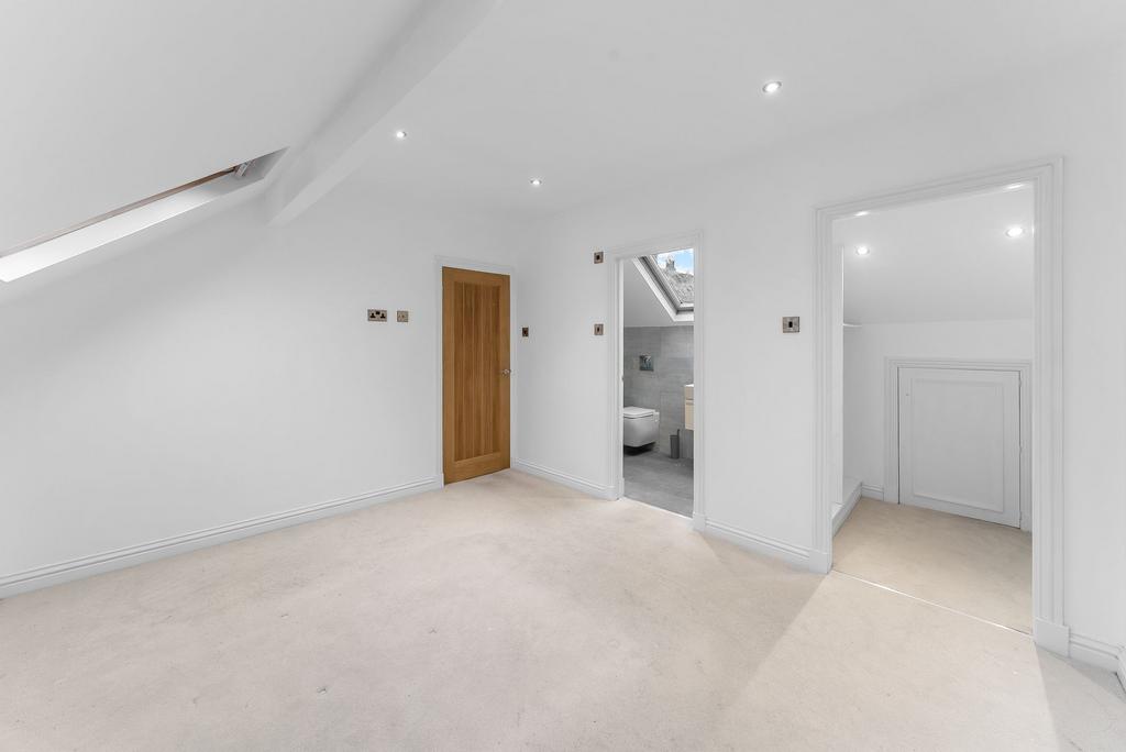 The second floor is dedicated to an impressive principal suite, offering a light-filled bedroom with Velux windows, a dressing area/walk-in wardrobe and a stylish en-suite shower room, creating a private and tranquil retreat.