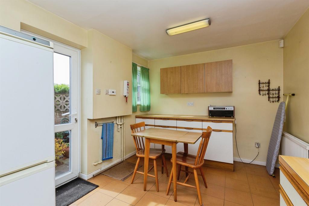 Double glazed window. Fitted kitchen with wall and base units, Stainless steel sink and drainer. Gas point for freestanding cooker. Space for fridge freezer. Plumbing for washing machine. Radiator. Tiled flooring.