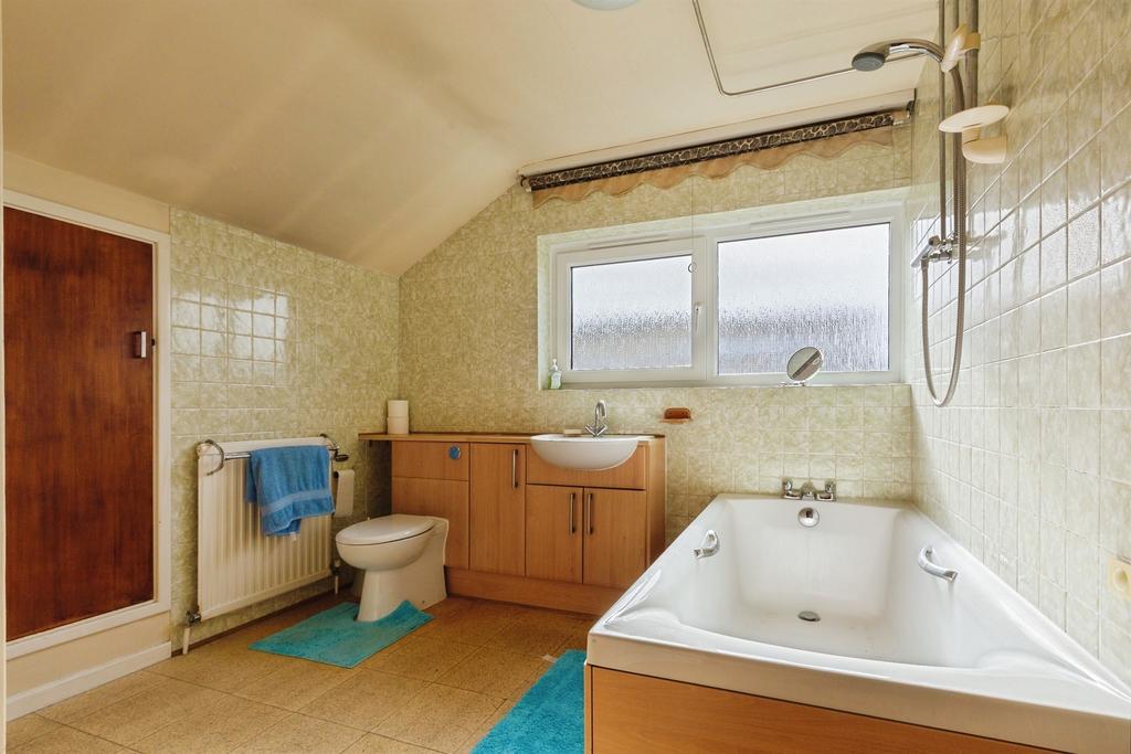 Double glazed window. WC. Wash hand basin in vanity unit. Bath with shower over. Tiling to water sensitive areas. Vinyl tiled flooring.