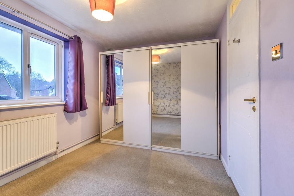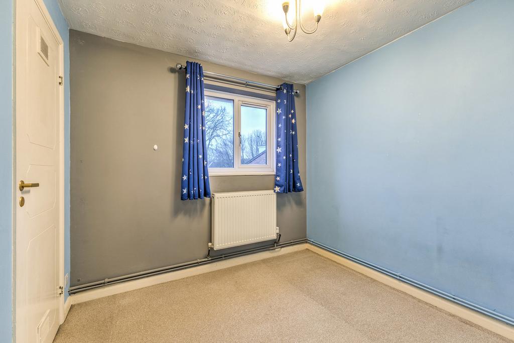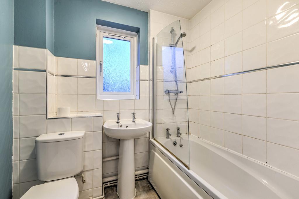 On the ground floor, the entrance hallway leads to a fitted kitchen with space for a freestanding fridge freezer and washing machine. To the rear, a reception room with garden view features laminate flooring, a feature fireplace and useful understairs storage. Upstairs, there is one double bedroom and one single bedroom, with one bedroom benefiting from a built-in wardrobe. The bathroom includes a white three-piece suite with shower over bath.