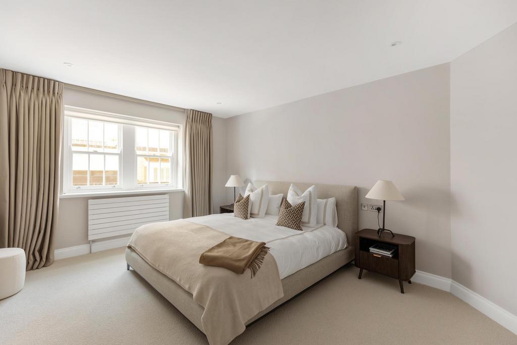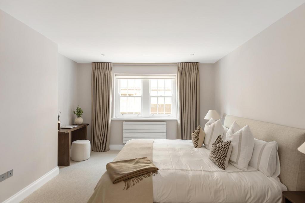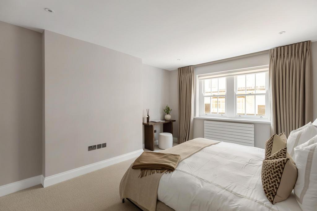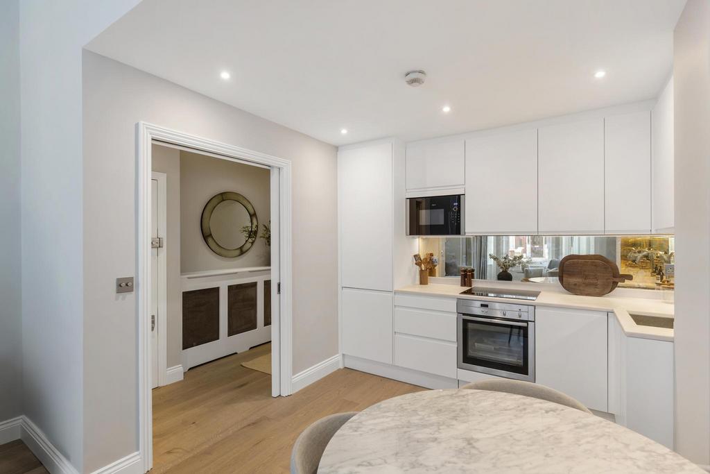 The apartment has been finished to an exacting standard, benefitting from stylish wooden flooring, quality appliances and new double‑glazed wooden sash windows throughout.