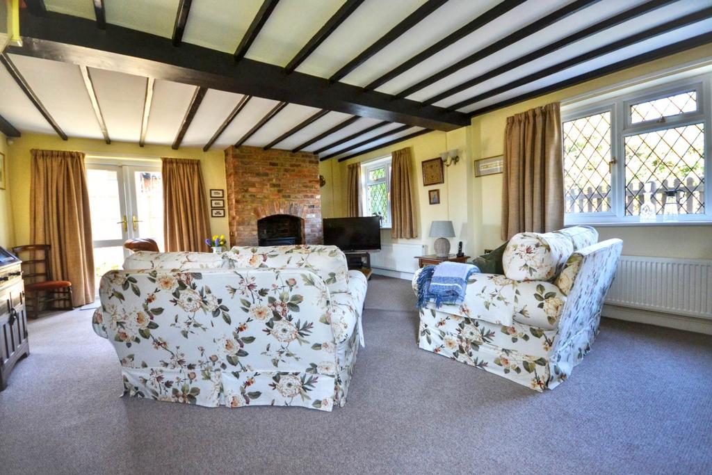 Internally the property features a central entrance that leads through to the fitted kitchen and the spacious living room. The living room is located to the front elevation and enjoys plenty of natural light from the double aspect windows whilst French doors leads to a side terrace. Furthermore, and providing a focal point to the room is a gas fire which is inset to the chimney breast.