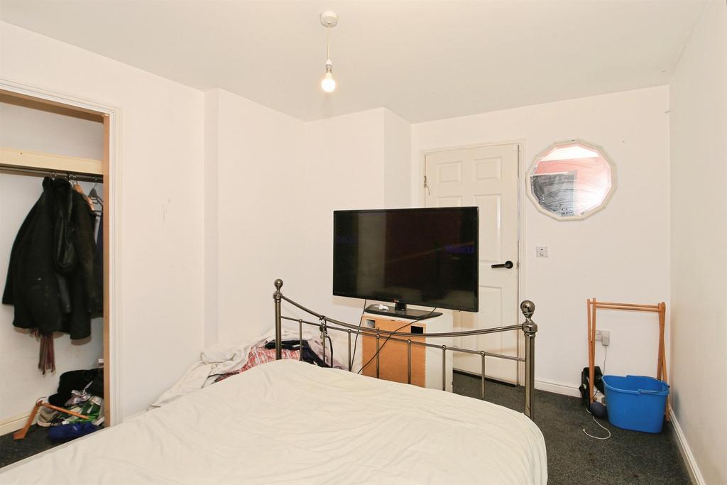The generous bedroom is positioned to the front of the property and provides ample space for bedroom furniture. Adjacent to this is the well-appointed bathroom, fitted with a three-piece suite including a bath with overhead shower, wash basin, and WC. There is also a useful airing cupboard accessible from the hallway for additional storage.