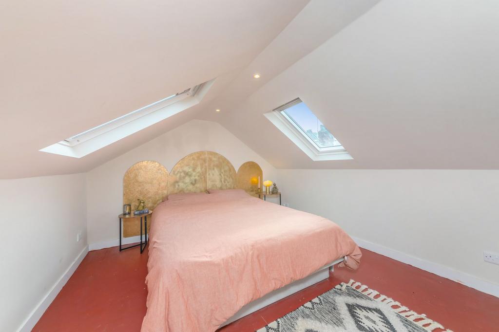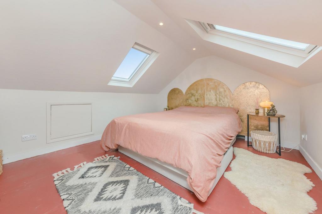 BEDROOM- At the top of the house is a newly converted loft room that nicely fits a double bed. It features vaulted ceilings and eaves storage with two Velux windows providing plenty of natural light.