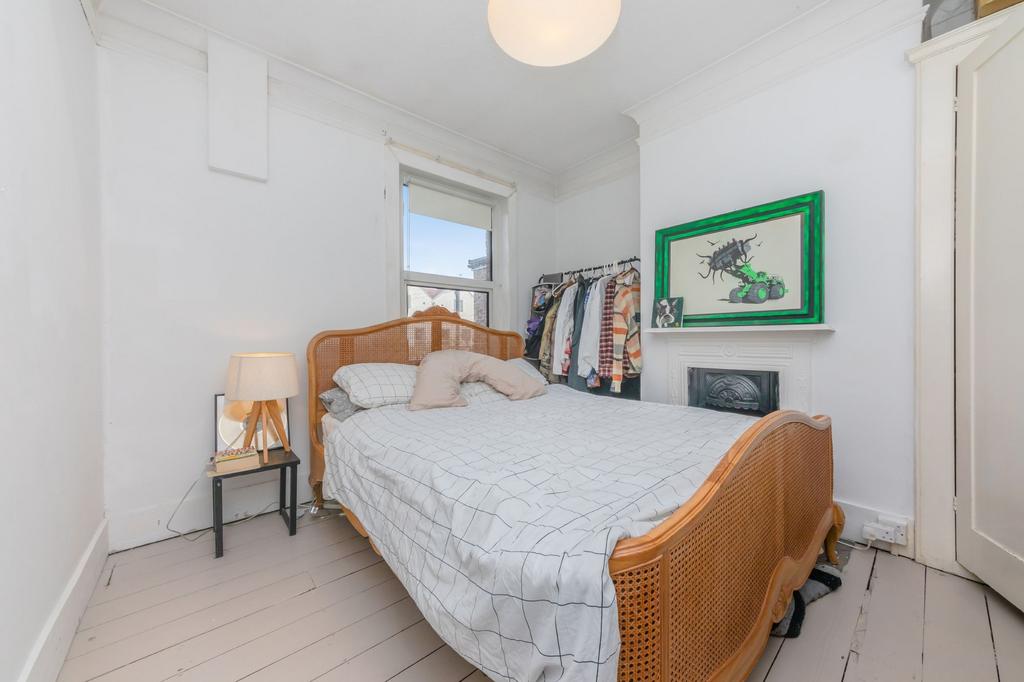 BEDROOM- A great size double bedroom featuring a front aspect double glazed bay window, flooding the room with natural light and providing beautiful far-reaching views across Lewes and of Lewes Castle. The room also boasts an ornate feature fireplace with a detailed cast iron surround and slate hearth. Built in wardrobe and stripped and painted floorboards
