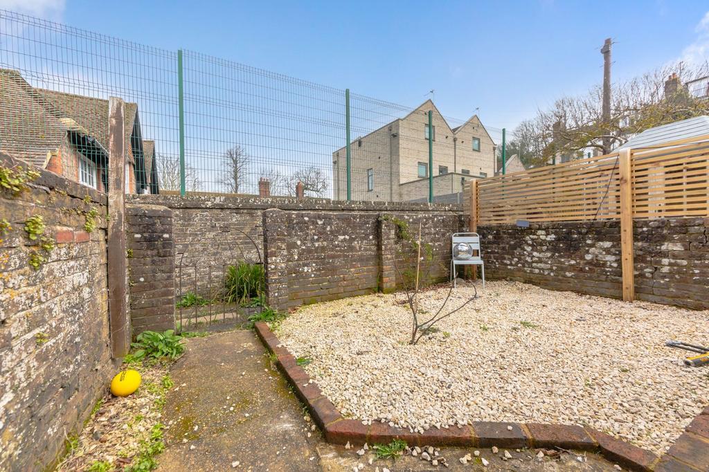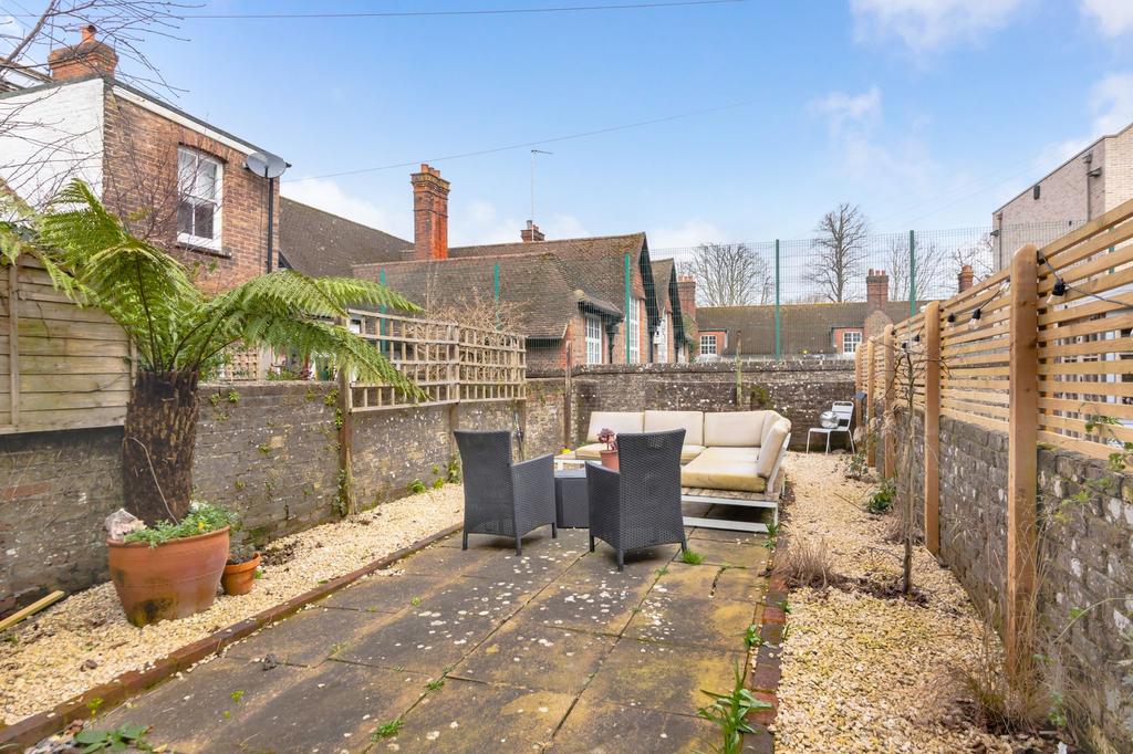 REAR GARDEN- A deceptively generous garden at the rear of the property, access from the kitchen. Mainly paved patio it is surrounded by shingle where a variety of trees and plants reside. Surround by a brick wall, this private garden also benefits from private gated rear access.