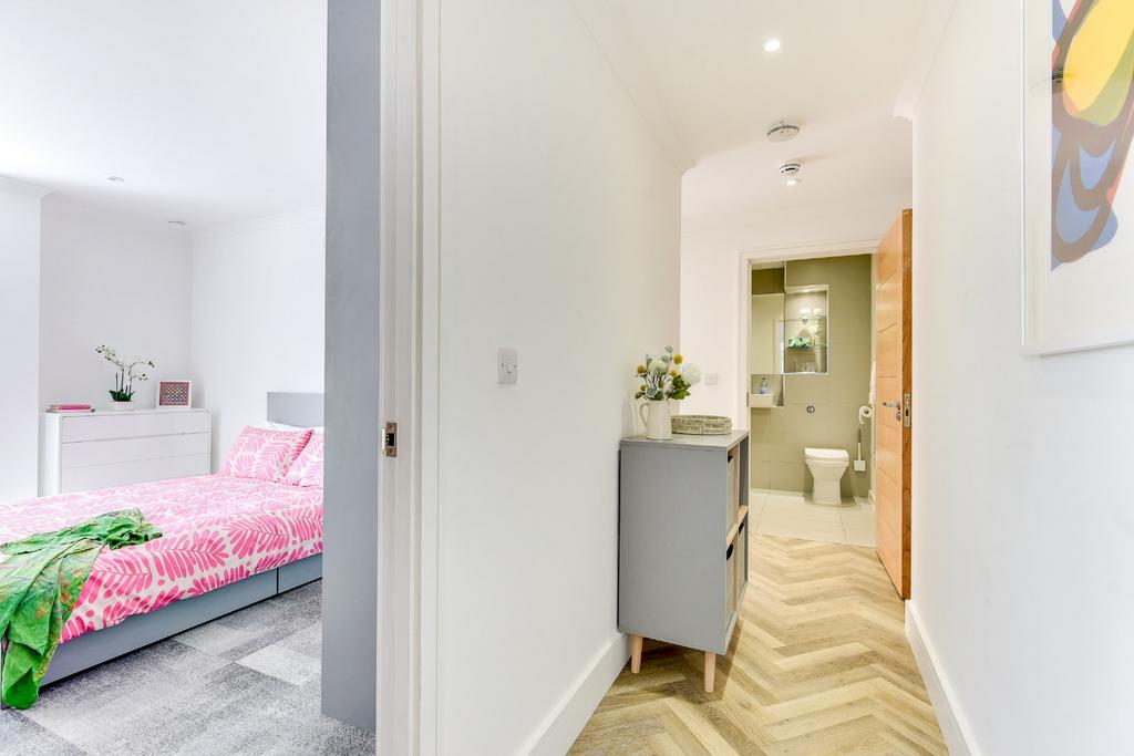 Upon entering, you are welcomed by a thoughtfully designed interior that prioritises comfort, efficiency, and modern living. The apartment boasts ultra-fast broadband underfloor heating throughout, complemented by a heat recovery system that enhances energy efficiency while maintaining excellent air quality. The bright and spacious reception room offers a versatile setting for both relaxation and entertaining, while the sleek, modern kitchen is fitted with high-quality fixtures and finishes. Both bedrooms are generously sized, providing peaceful and comfortable retreats, with the principal bedroom offering excellent proportions. The property is served by a stylish and well-appointed main bathroom, finished to a high standard.
