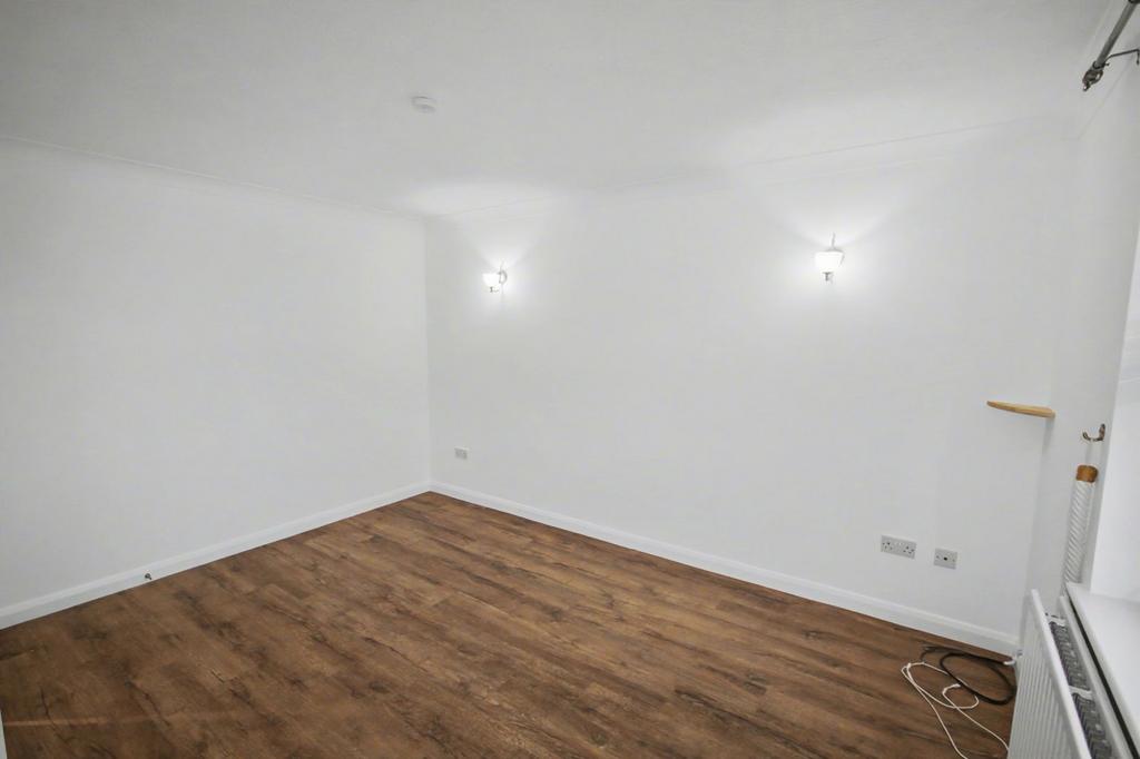 SITTING ROOM: Continuation of wooden flooring, radiator, wall mounted lights and window to front.