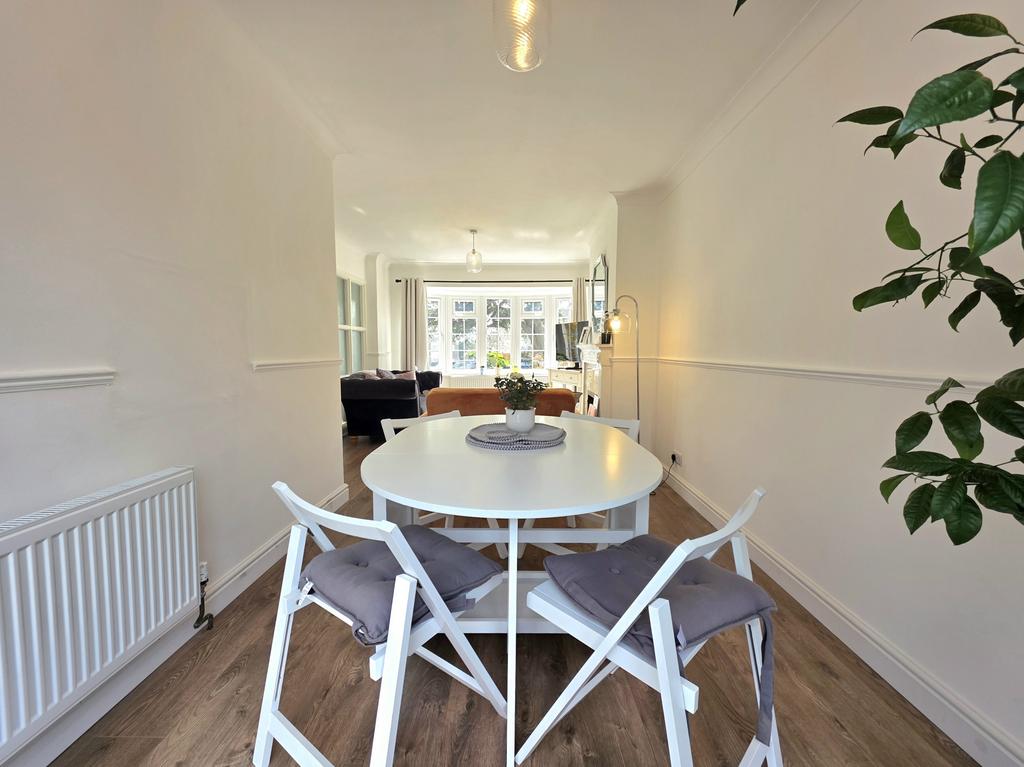 Internally, the property offers a spacious through lounge, cleverly arranged to provide both a dining area and a separate reception space, creating a flexible and comfortable living environment. The kitchen is separate and positioned to the rear, fitted with white goods and offering access directly onto the private garden.