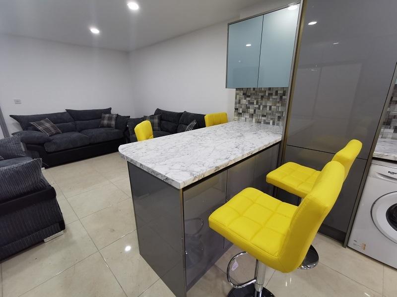 The heart of this home is the generously sized open living room and kitchen, thoughtfully equipped with a suite of appliances that includes two ovens, two gas hobs, two fridge freezers, a washing machine, a separate dryer, and a dishwasher, catering to your every need.