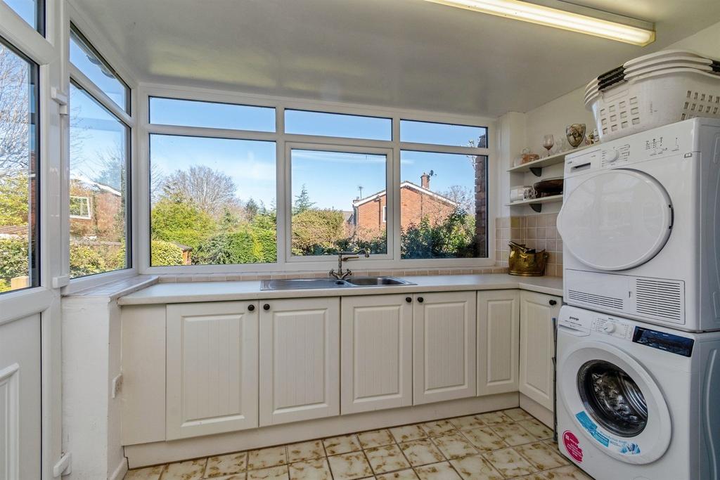 Having a double glazed window to the rear and side, base units and work tops over, space for appliances, boiler and door to: