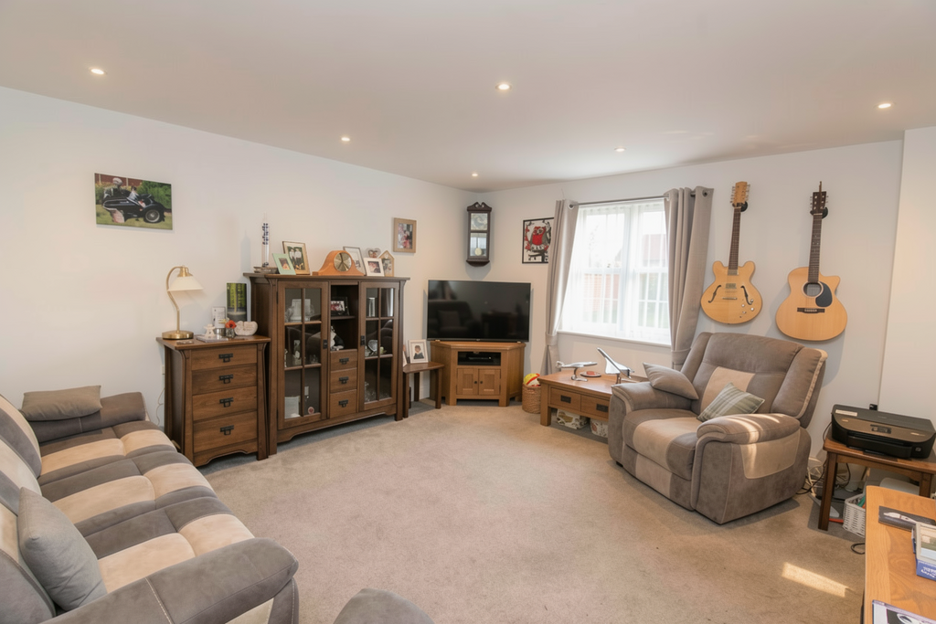 Abt. 14' 6" x 13' 0" (4.42m x 3.96m) Double glazed window to front. Television point. Inset ceiling lights. Carpet as fitted with underfloor heating.