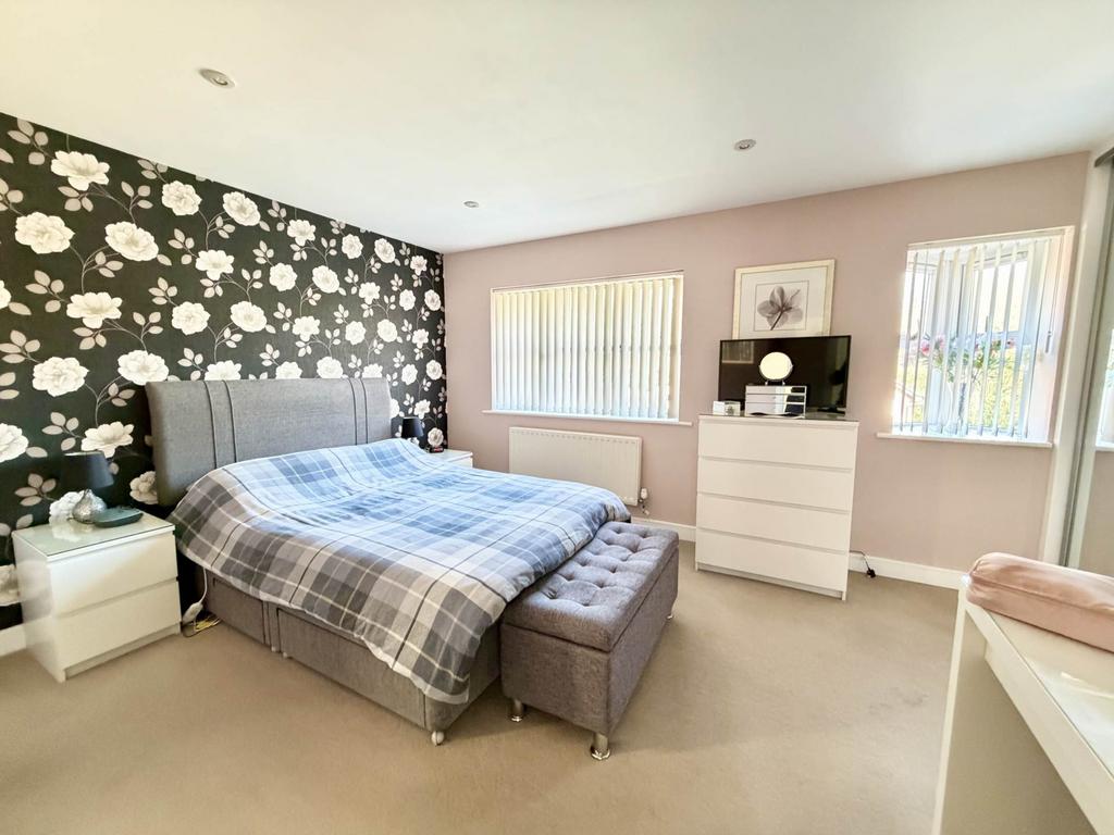 Double glazed window to the front. Further V-shaped oriel bay window to the front. A spacious master bedroom with built-in mirror fronted wardrobe. Radiator. Door to: