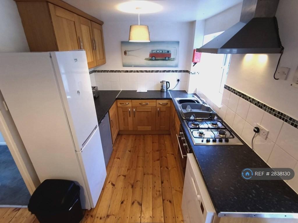 well presented 3 story house located in a quiet cul-de-sac 12 minutes walk from the town and 7 minutes from Swanpool beach. Falmouth campus and Penmere train station are nearby. the five bedrooms all have a double bed ,wardrobe or wall cupboards, chest of draws, desk and chair, three of them are large and some have a sofa as well. The basement bedroom has its own shower, toilet and sink as well as a microwave and fridge. There is an open plan kitchen/lounge with oak kitchen, LCD TV and two sofas . There are 2 fridge/freezers, dishwasher ,washing machine and tumble dryer. Off the kitchen is a small conservatory with dining table and chairs. There is a family bathroom on the top floor with shower bath, toilet and sink. The house has double glazing and gas central heating, the cavity walls have being insulated as is the roof. Outside you will find gardens to the front and rear as well as parking for 2 cars. The house has been issued with a HMO licence from Cornwall Council and has an extensive fire alarm system, fire doors and emergency lighting. contract starting on the 15th July with rooms priced at £500 £525 £540 £550 £600pcm plus bills that are around £70 but may go up. You will be renting from a local landlord with 26 years experience and there are no application fees to pay a guarantor is required to guarantee your proportion of the rent. Basic plans with approximate dimensions in the pics