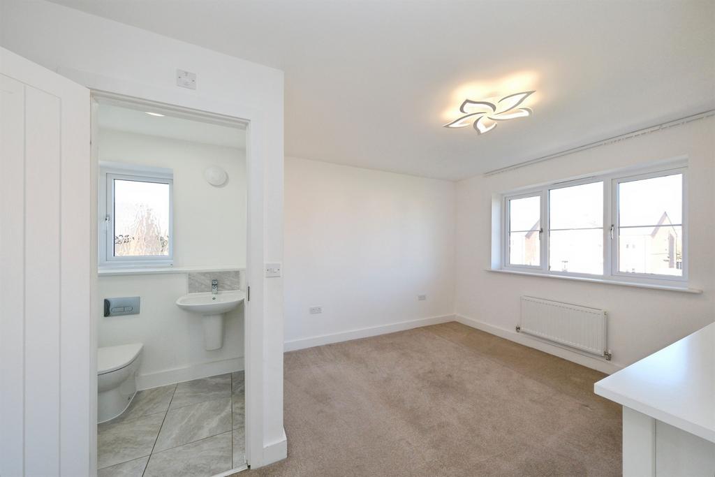 The en-suite bathroom offers a sleek, private retreat directly from the principal bedroom. Finished in a contemporary style, it features a modern shower, fresh tiling and clean, understated fittings that create a calm feel. Thoughtfully designed for everyday convenience, it provides a bright, refreshing space that enhances the comfort and appeal of the main bedroom.