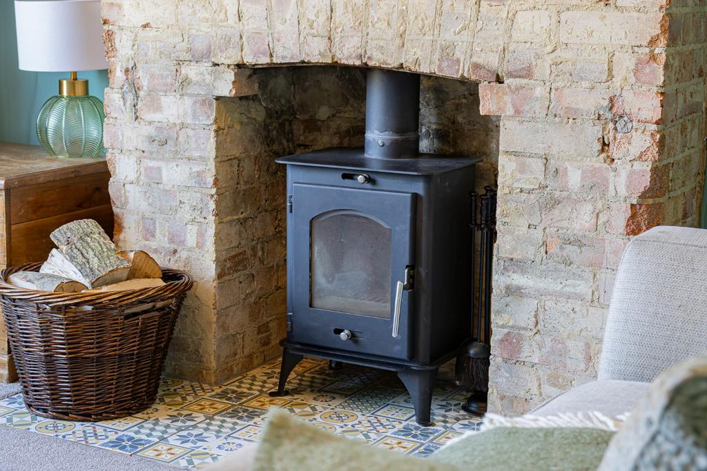 - Living room with attractive log burner
