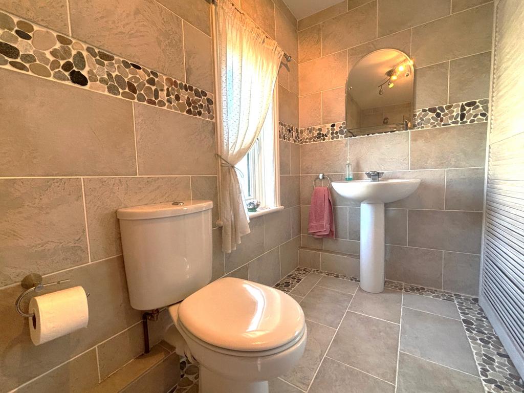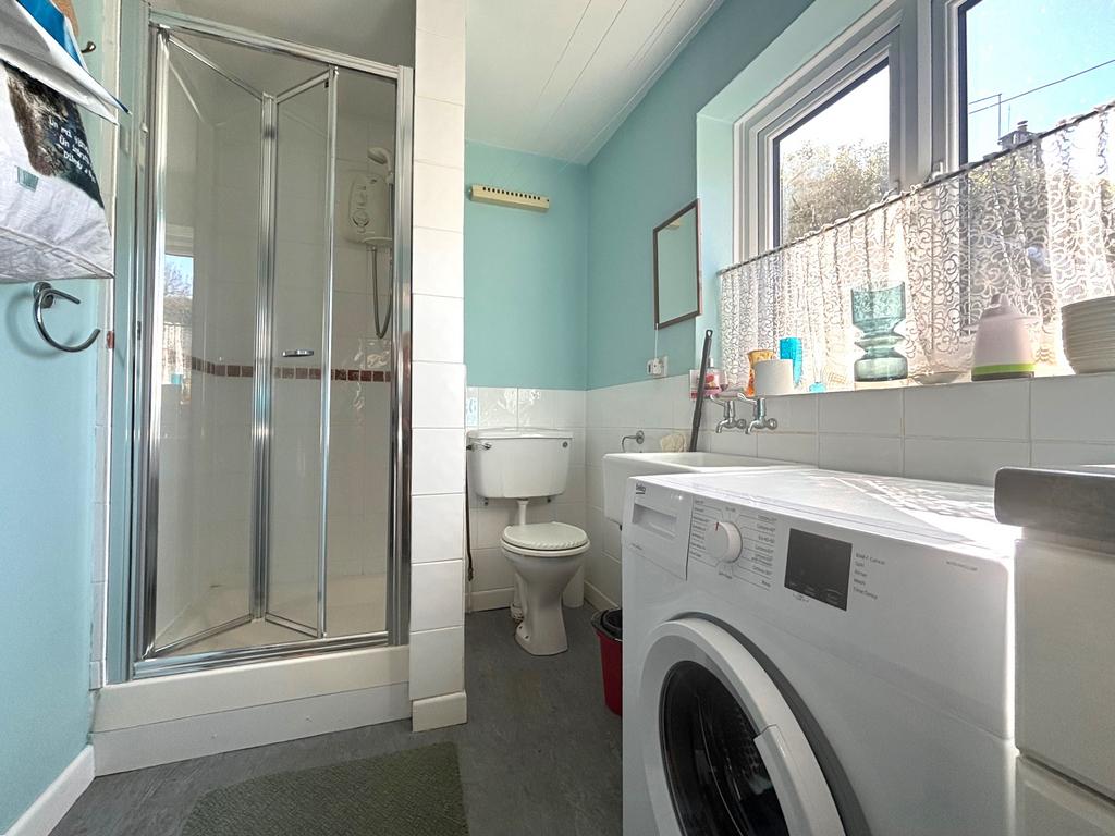 UTILITY/SHOWER ROOM/W.C.: 10'7" (3.22m) x 5'9" (1.75m). Tiled shower cubicle with Mira shower unit, low level w.c., wash basin, space and plumbing for washing machine, radiator, appliance space, part half tiled walls.