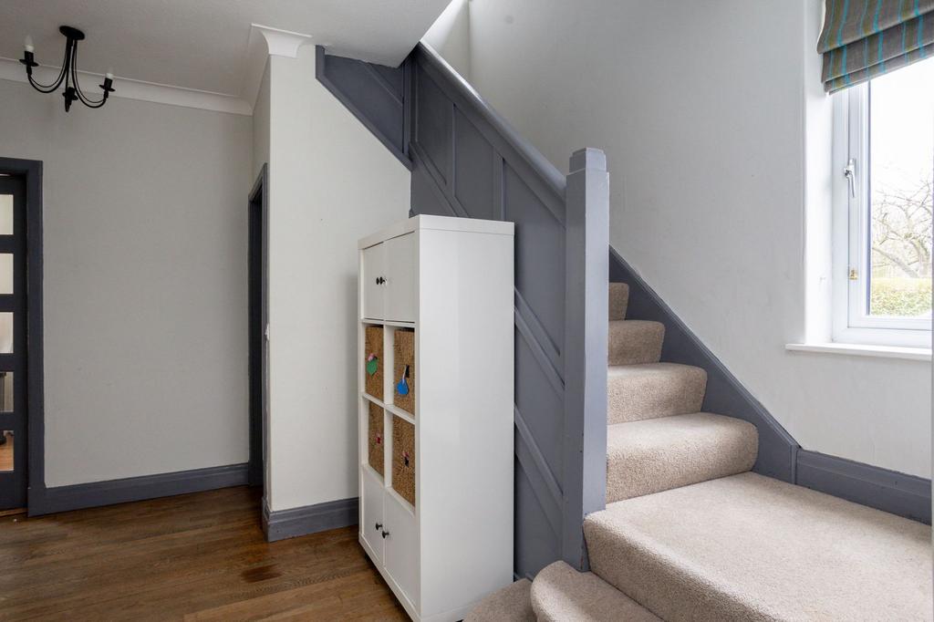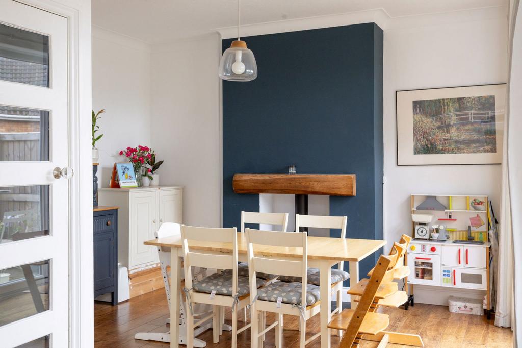 Stepping inside, you are welcomed by a spacious entrance hallway, with original wooden flooring, that gives a real sense of light and flow. To the front, the lounge is a calm and comfortable space with a bay window that lets in plenty of natural light. The room centres around a beautiful period style fireplace with detailed surround, adding warmth and character and creating a cosy place for family evenings.