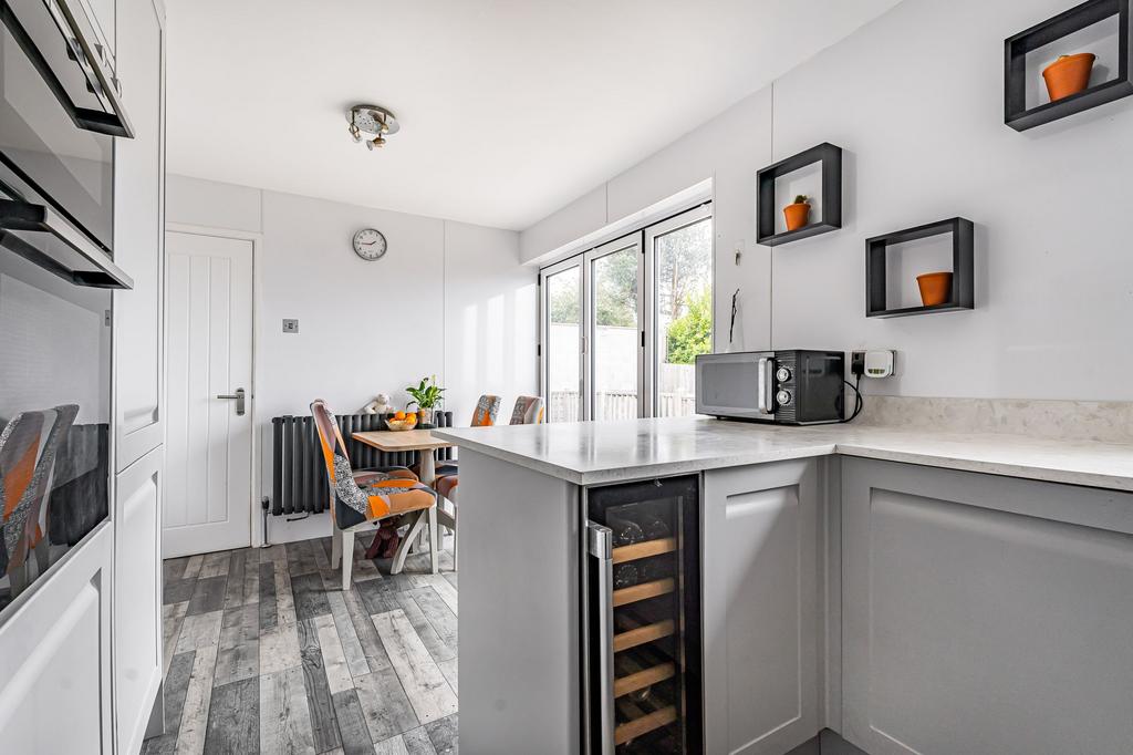 The kitchen/breakfast room was beautifully re designed with a new contemporary kitchen with grey units and white marble worktop with integrated appliances such as, fridge freezer, double oven, electric hob, dishwasher and wine cooler. The kitchen is a great place to entertain and is flooded with natural light thanks to the newly installed bi-fold doors out to the rear garden which take advantage of the stunning views.