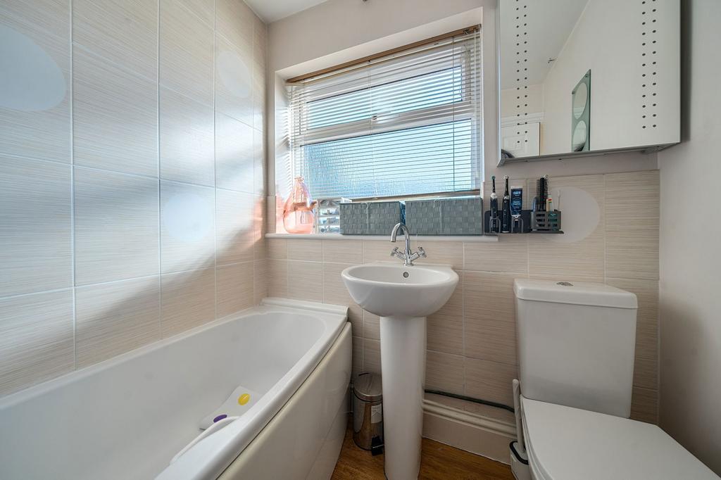 Upstairs, the property comprises two well-proportioned double bedrooms situated on either side of the landing, complemented by a third room that would function perfectly as a nursery, study, or guest bedroom. A well-appointed family bathroom services this floor.