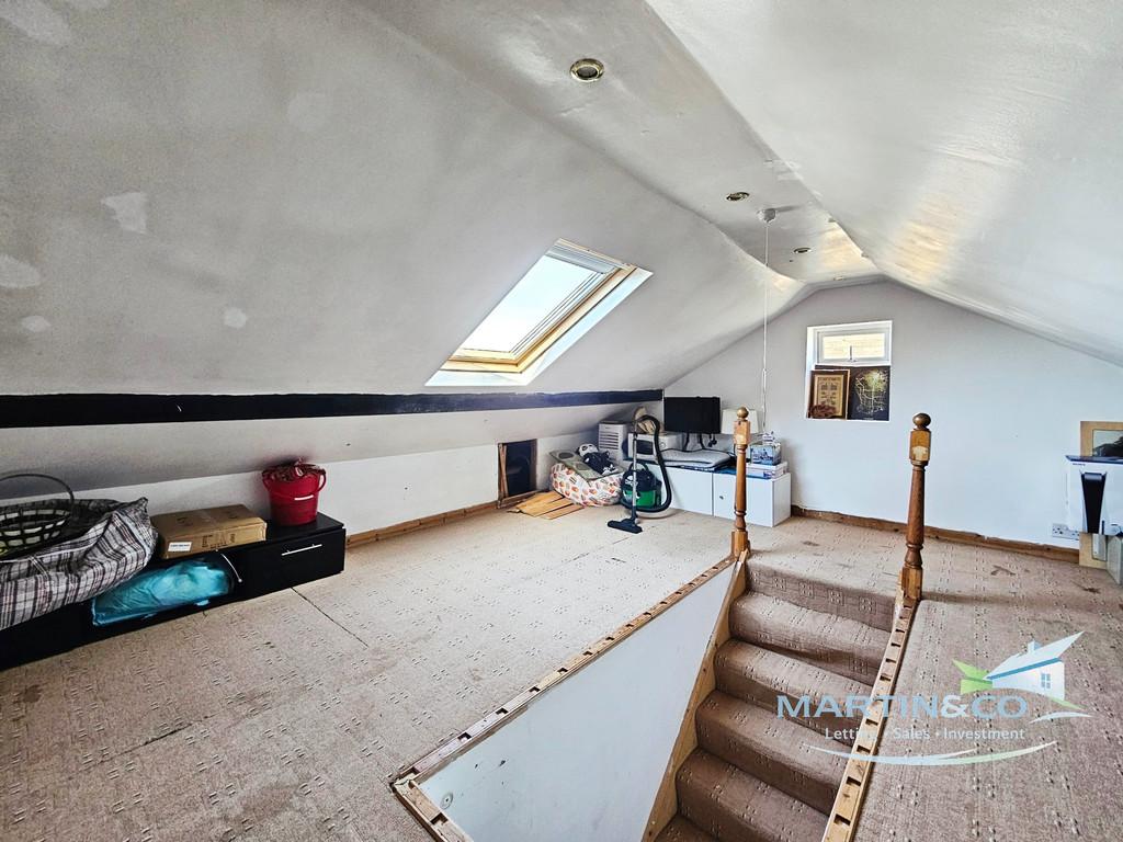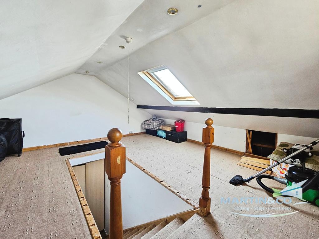 Accommodation comprises two double bedrooms, both with built-in wardrobes, and a further single bedroom. There is one bathroom. A useful attic room offers additional flexible space, suitable for storage or a hobby area, subject to any necessary consents.