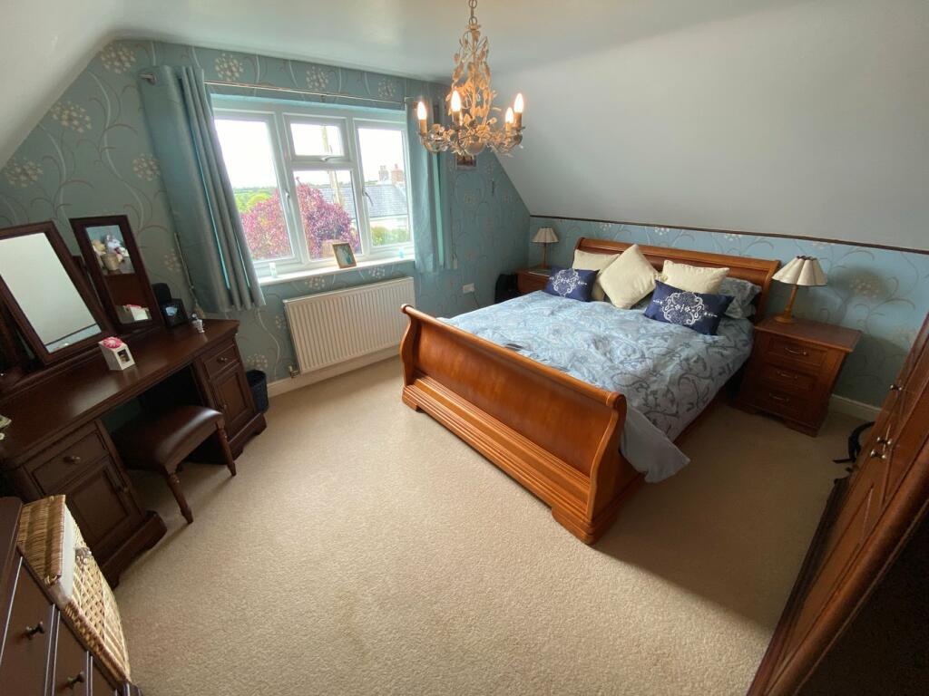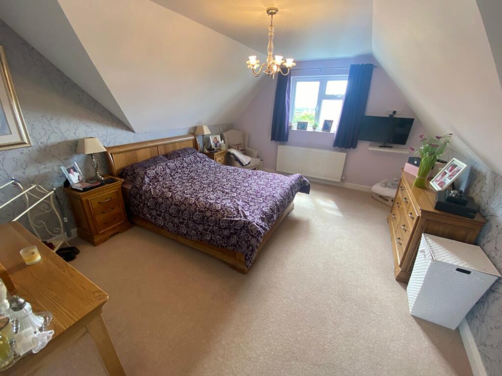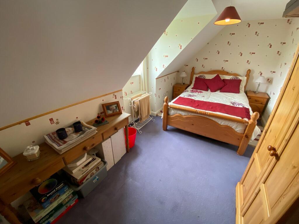 Master Bedroom 15’2 x 12’7 with window to fore, radiator, 4 double power points, storage area to side and door into: Ensuite Shower Room 7’4 x 7’1 with Velux window to rear, glazed double cubicle with shower unit, slate effect ceramic tiled floor, tiled walls, WC, hand wash basin set in vanity unit, radiator, extractor fan, wall mounted mirror with integral light and shower pointBedroom 2 16’1 max. x 14’6 with window to
