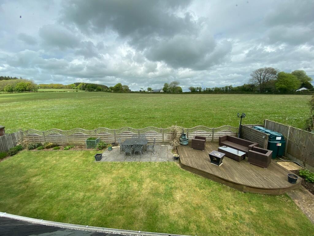 The property is a two storey detached house, erected circa 2006 of timber frame construction under a slate composite tiled roof & finished to a high standard throughout, with one room only having a timber floor, oak internal doors and all principal rooms having a TV aerial connection point. Since the current owners occupation, they have extended the dwelling by adding the Garage and Master Bedroom above. The House sits in a compact and easy manageable plot, with generous tarmac base courtyard to the fore, and semi-elevated lawn and timber decking seating area to the rear, with glorious rural outlook to the rear. We’re advised that both the Central Heating boiler and oil storage tank were replaced some 3 years ago.
