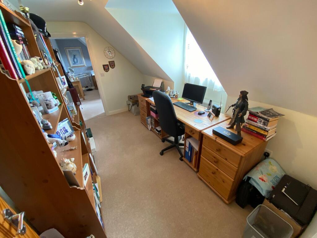 Bedroom 4 16’4 x 9’1 with window to rear, part sloping ceiling, 2 double power points, radiator, under eaves storage.