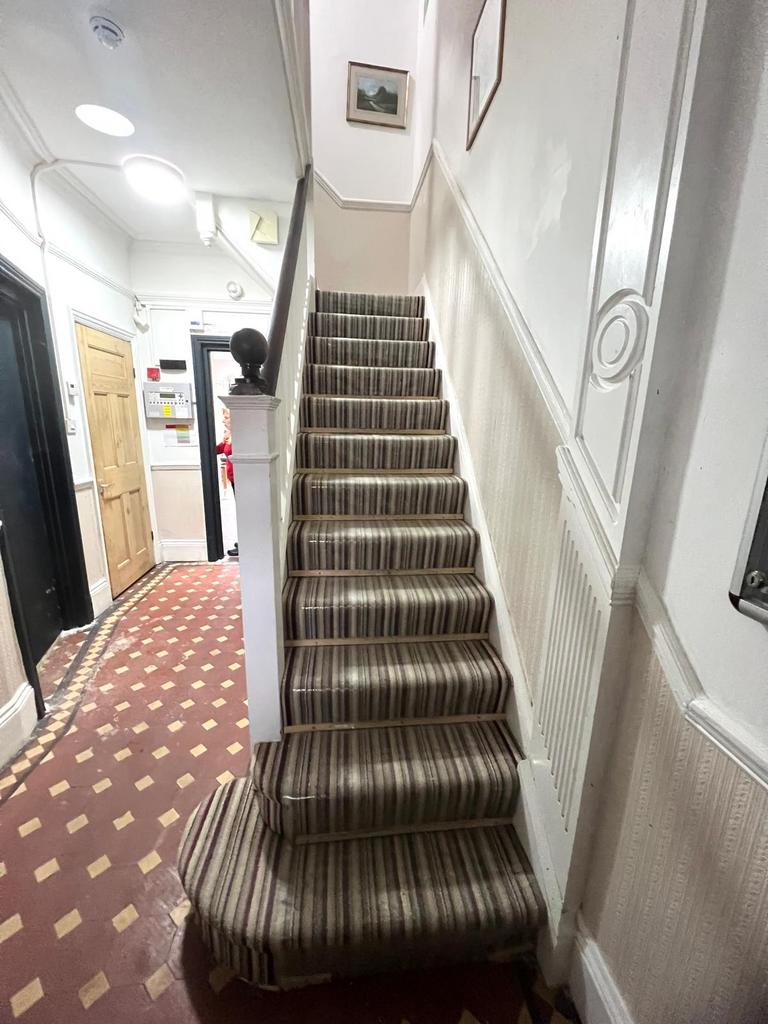 Upstairs are six well-proportioned bedrooms-four doubles and two singles-with wooden flooring throughout. Two communal bathrooms on the first and second floors add practicality for larger households.