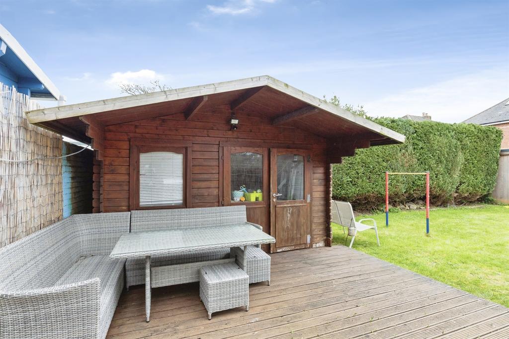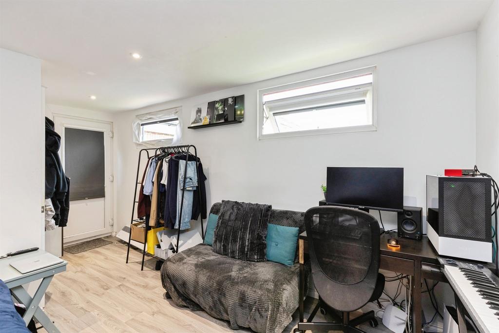 The property further benefits from a large, sunny rear garden, ideal for children, entertaining and outdoor dining. The former garage has been converted under permitted development to create a superb studio space, perfect as a home office, guest room, gym or creative workspace.