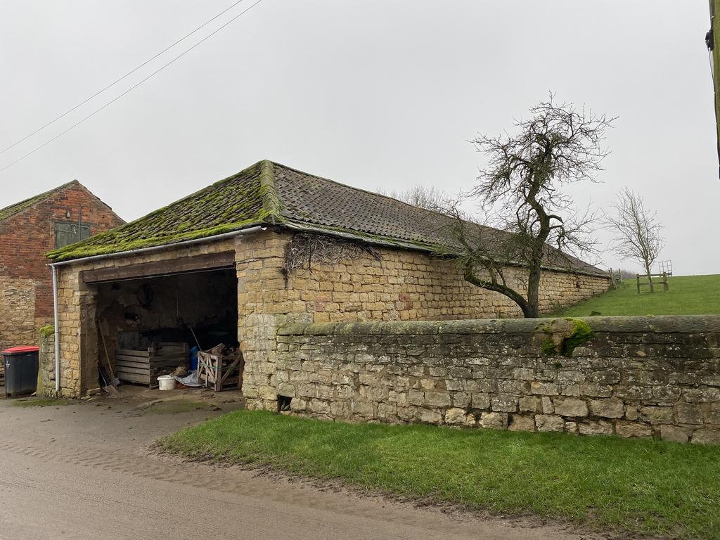 The farmstead includes a Grade 2 listed stone barn, a smaller stone barn, stone cart shed, a further cart shed, a brick barn, lambing shed, grain stores and Dutch Barn. The farmstead is enclosed by a stone wall.